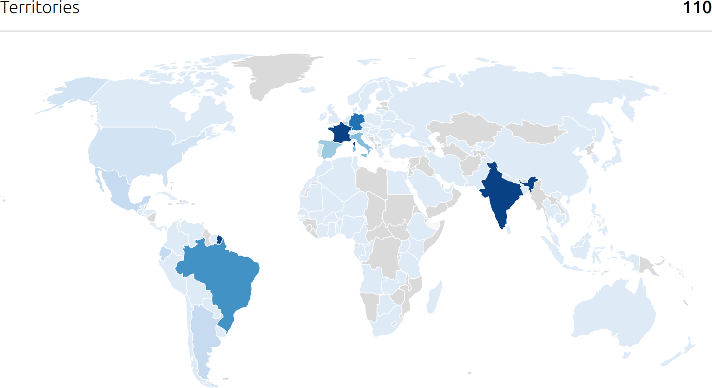 France (with 226 installations). The next countries are Germany (192), Brazil (159) and Spain (103).
